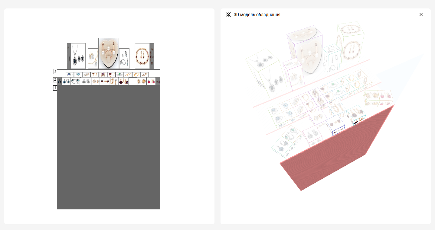 Un planograma de joyería es una herramienta visual que define la disposición de las joyas (como collares, anillos, pendientes y pulseras) en estantes, vitrinas o mostradores de la tienda. Los planogramas para joyería permiten organizar estratégicamente los productos, destacar piezas clave, asegurar coherencia y optimizar el uso del espacio. Además, sirven como guía para el personal, mostrando exactamente cómo y dónde colocar cada joya. Esto garantiza el cumplimiento de la estrategia de merchandising de joyería, la alineación con la marca de la tienda y el logro de objetivos promocionales.