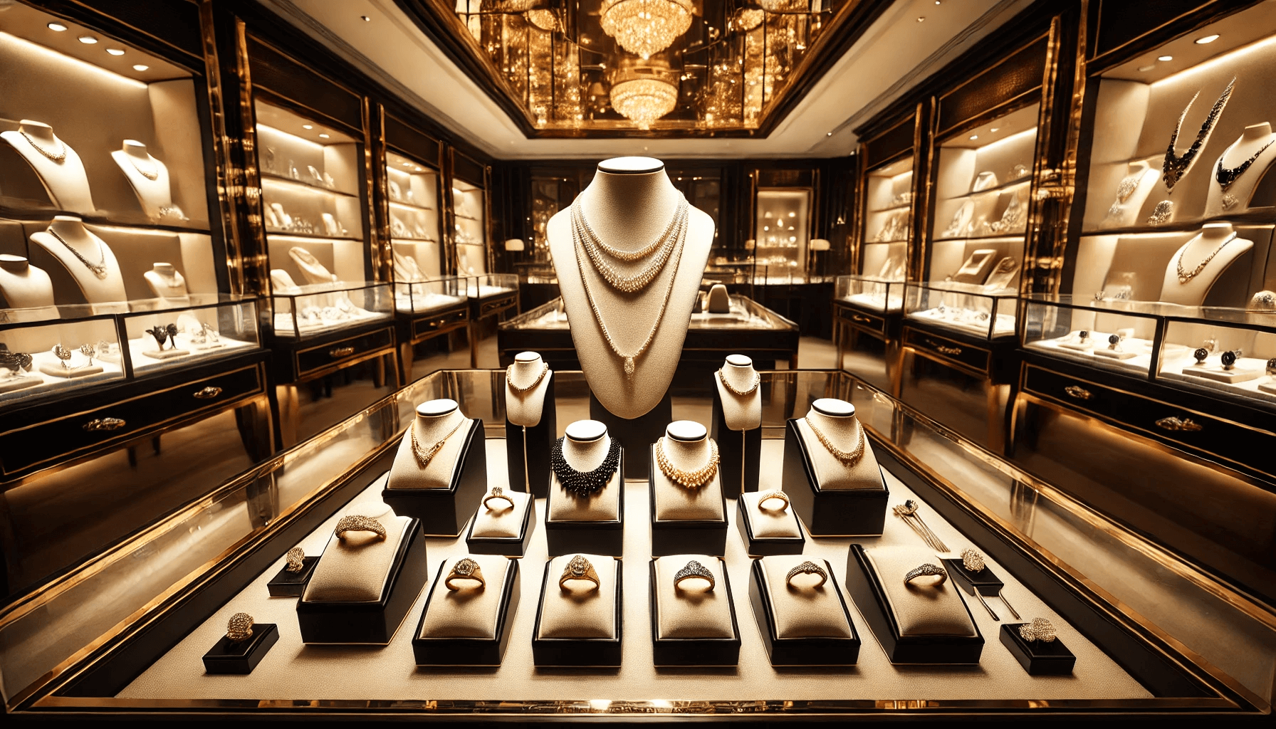 Piezas exclusivas: Coloca las joyas premium en vitrinas centrales con iluminación especial para resaltar su valor.